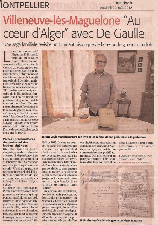 Rédacteur à "Notre Journal" depuis des lustres (40 articles signés "Jean-Louis"), je vous propose une édition de mon ouvrage sorti début Juillet 2018 aux éditions "Plume-de-Soi" de Sète