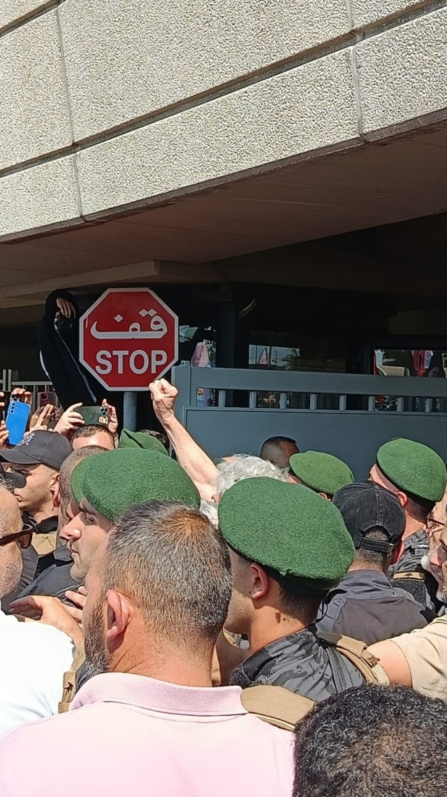Sous un soleil de plomb, avec pour seule ombre une partie de la route supérieure, les manifestants n’en démordent pas et chantent avec ferveur une myriade de slogans — pour la liberté de Georges, contre l’occupation et la colonisation, pour la résistance populaire, à l’encontre notamment des Français et du gouvernement libanais. Tandis que de jeunes militantes distribuent des fleurs, les cinq enceintes installées près de la porte principale se mettent à vibrer. Le son alterne entre chants communistes et slogans militants de la part des organisateurs du rassemblement, qui annoncent — à plusieurs reprises — l’arrivée imminente de Georges Ibrahim Abdallah.