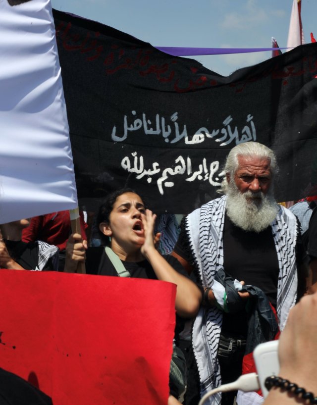 Les soldats sont présents mais semblent plutôt détendus. De nombreux drapeaux palestiniens s’agitent dans les airs.