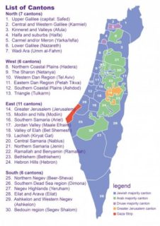 Un élément particulièrement délicat sera le maintien de l’équilibre ethnique tant sur le plan national qu’entre les cantons : fort heureusement la préoccupation devrait être partagée, Arabes comme Juifs ne souhaitant certainement pas se faire minoriser dans un de “leurs” cantons. La problématique est un peu celle de la Bosnie, celle de la Belgique (particulièrement autour de Bruxelles) ou, en Suisse, la “frontière des langues”3. Là aussi, la création de cantons aide car elle crée un rattachement qui s’ajoute à celui de la “nationalité”4et permet un certain contrôle des mouvements de population.